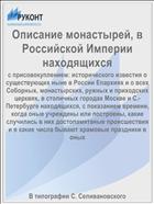 Описание монастырей, в Российской Империи находящихся : с присовокуплением: исторического известия о существующих ныне в России Enapxияx и о всех Соборных, монастырских, ружных и приходских церквях, в столичных городах Москве и С.-Петербурге находящихся, c показанием времени, когда оные учреждены или построены, какие случились в них достопамятаные происшествия и в какие числа бывают храмовые праздники в оных .— Издание 8, с 7-го 1828 года, с исправлениями .— : В типографии С. Селивановского, 1834 .— 124 с. — URL: https://rucont.ru/efd/120472 (дата обращения: 07.11.2025)