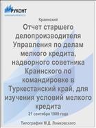 Краинский. Отчет старшего делопроизводителя Управления по делам мелкого кредита, надворного советника Краинского по командировке в Туркестанский край, для изучения условий мелкого кредита : 21 сентября 1909 года / Краинский .— : Типография М.Д. Ломковского, 1909 .— 102 с. — URL: https://rucont.ru/efd/123426 (дата обращения: 07.11.2025)