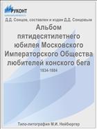 Сонцов, Д.Д. Альбом пятидесятилетнего юбилея Московского Императорского Общества любителей конского бега : 1834-1884 / составлен и издан Д.Д. Сонцовым; Д.Д. Сонцов .— : Типо-литография М.И. Нейбюргер .— 278 с. — URL: https://rucont.ru/efd/124358 (дата обращения: 09.11.2025)