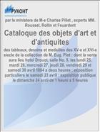 Cataloque des objets d'art et d'antiquites : des tableaux, dessins et medailles des XV-e et XVI-e siecle de la collection de M. Eug. Piot : dont la vente aura lieu hotel Drouot, salle No. 5, les lundi 25, mardi 26, mercredi 27, jeudi 28, vendredi 29 et samedi 30 avril 1864 a deux heures : exposition particuliere le samedi 23 avril : exposition publique le dimanche 24 avril de 1 heure a 5 heures / par le ministere de M-e Charles Pillet , experts MM. Roussel, Rollin et Feuardent .— : [Б.и.] .— 130 с. — Lang: fre .— URL: https://rucont.ru/efd/128213 (дата обращения: 10.11.2025)
