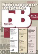 Журнал посвящен широкому кругу проблем содержания и организации деятельности библиотек как одного из важнейших социальных институтов в сфере культуры, науки, образования, информации, рассматривает вопросы библиотечного дела в социально-культурном контексте, в единстве современных проблем и истории, теории и практики, во взаимосвязях с гуманитарными науками, на фоне мировых процессов в этой области. <...>