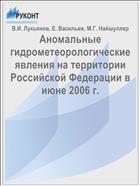 МЕТЕОРОЛОГИЯ И ГИДРОЛОГИЯ 2006 ¹9 УДК 551.506.2:551.509<<2006.06>>(047)(47+57) Аномальные гидрометеорологические явления на территории Российской Федерации в июне 2006 г. Е. В. Васильев, В. И. Лукьянов, М. Г. Найшуллер Особенности атмосферной циркуляции Северного полушария В средней стратосфере Северного полушария в июне 2006 г. усиливался антициклонический вихрь с центром над полюсом. <...> В экваториальной стратосфере продолжалось развитие западной фазы ветров квазидвухлетнего цикла. <...> В средней тропосфере на изобарической поверхности 500 гПа центр околополярного циклонического вихря располагался практически над полюсом, что близко к его климатическому положению. <...> Его интенсивность оказалась на 8 дам меньше нормы, и это явилось самой значительной отрицательной аномалией в поле геопотенциала. <...> В умеренных же широтах практически повсюду преобладали значительные положительные аномалии геопотенциала (7—12 дам). <...> Поэтому ложбины, связанные с полярным циклоном, были выражены слабо (кроме ложбин над востоком Тихого океана и востоком Северной Америки). <...> Самые значительные положительные аномалии геопотенциала отмечались над Сибирью (12 дам), Уралом (10 дам), Северной Атлантикой (10 дам), Канадой (7 дам)и северо-западом Тихого океана (9 дам). <...> К тому же и положение ее, гораздо более северное, значительно (на 10—15°) отличалось от климатического, особенного в восточной части Северного полушария. <...> В поле приземного давления, так же как и на АТ-500, главной особенностью стало преобладание положительных аномалий давления в умеренных широтах и значительных отрицательных аномалий в полярных и приполярных районах. <...> 109 ОБЗОРЫ И КОНСУЛЬТАЦИИ МЕТЕОРОЛОГИЯ И ГИДРОЛОГИЯ 2006 ¹ 9 Метеорологические явления В июне 2006 г. на территории России наблюдалось 64 опасных гидрометеорологических явления (ОЯ) и 3 неблагоприятных гидрометеорологических явления, которые по своим характеристикам были близки к критериям ОЯ. <...> В Северо-Западном федеральном округе1и2 июня <...>