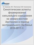 Е. К. Семенов*, В. С. Платонов*, Е. В. Соколихина* По ежед нев ным дан ным ре а на ли за NCEP/NCAR рас смот рен си ноп ти - чес кий ме ха низм фор ми ро ва ния ано ма лий ат мос фер ной цир ку ля ции над тро - пи ка ми Индий ско го и Ти хо го оке а нов, на блю дав ших ся в пе ри од куль ми на ции Ла-Нинья 2010—2011 гг. <...> При этом тро пи чес кие цик ло ны по оче ред но воз де йство ва ли на мус сон ные ре ги о ны Австралии как с Индий ско го оке а на че рез сис те му эк - ва то ри аль ной зоны за пад ных вет ров, так и с Ти хо го че рез сис те му вос точ - но го пас са та. <...> Ти хо о ке ан ский пас сат в пе ри од австра лий ско го на вод не ния был мак си маль но раз вит, а южно-ти хо о ке ан ский ан ти цик лон су щес твен но сме щен от по бе режья Перу и Чили к цен тру оке а на. <...> По ка за но, что мак си - маль ные зна че ния от ри ца тель ных ано ма лий ТПО на блю да лись не на вос то ке Ти хо го оке а на, как в случае “канонического” Ла-Нинья, а были значительно смещены на запад к линии смены дат. <...> Все это позволяет отнести экстремальное Ла-Нинья 2010—2011 гг. к Ла-Нинья типа Модоки. <...> М. В. Ломоносова разрабатывается композиционный сценарий развития крупномасштабных аномалий явления ЭльНиньо — южное колебание (ЭНЮК). <...> В рамках этой работы раздельно для событий Эль-Ниньо и Ла-Нинья уже получены композиционные поля наиболее <...>