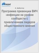 Шаболтас ПРОГРАММА ПРЕВЕНЦИИ ВИЧ-ИНФЕКЦИИ НА УРОВНЕ СООБЩЕСТВ С ПРИВЛЕЧЕНИЕМ ЛИДЕРОВ ОБЩЕСТВЕННОГО МНЕНИЯ В статье представлены основные положения теории диффузии инноваций Э. <...> Роджерса, дан обзор эмпирических работ по использованию этой теории в продвижении здоровьесберегающих поведенческих практик и превенции рискованного поведения в сфере здоровья. <...> Приведены результаты лонгитюдного исследования эффективности групповой поведенческой превентивной программы для лидеров общественного мнения, разработанной под руководством автора в рамках международного исследовательского проекта по превенции ВИЧ и инфекций, передаваемых половым путем (ИППП), на уровне сообществ студентов, проживающих в общежитиях г. Санкт-Петербурга. <...> Ключевые слова: теория диффузии инноваций, лидеры общественного мнения, ВИЧ/СПИД, превенция, лонгитюдное исследование. <...> The manuscript described the basis issues of Roger’s diffusion of innovations theory, the variety of empirical data on applying this theoretical approach in promotion of protective health behaviors and prevention of health risk behaviors. <...> Also author presents the main results of longitudinal research conducted to evaluate the effectiveness of group behavioral intervention for popular opinion leaders as part of international research project to prevent HIV/STD among students living in dormitories in St. <...> The study was funded by National Institute of Mental Health (USA) — NIMH Collaborative HIV/STD Prevention Trial. <...> Key words: diffusion of innovations theory, popular opinion leaders, HIV/ AIDS, STD, prevention, longitudinal study. <...> Шаболтас Алла Вадимовна — канд. психол. наук, доцент, зав. кафедрой психологии поведения и превенции поведенческих аномалий, декан ф-та психологии Санкт-Петербургского гос. ун-та. <...> E-mail: a.shaboltas@spbu.ru Исследование проведено при поддержке гранта Национального института психического здоровья США — NIMH Collaborative HIV/STD Prevention Trial. <...> 105 Привлечение лидеров общественного мнения к продвижению здоровьесберегающего поведения на уровне сообществ основывается на теории социальной диффузии, или диффузии инноваций, предложенной Э. <...> На ее основе был разработан целый ряд превентивных программ <...>