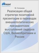 № 2 М.А. Степанова, аспирант кафедры лексики английского языка Московского педагогического государственного университета; e-mail: SMariuccia@yandex.ru РЕАЛИЗАЦИЯ ОБЩЕЙ СТРАТЕГИИ ПОЗИТИВНОЙ ПРЕЗЕНТАЦИИ В ПЕРЕВОДАХ ВНЕШНЕПОЛИТИЧЕСКИХ ПРЕЗИДЕНТСКИХ ВЫСТУПЛЕНИЙ ЛИДЕРОВ США, ВЕЛИКОБРИТАНИИ И РОССИИ В статье рассматривается проблема сохранения прагматического потенциала на фоне достижения высокой степени семантической эквивалентности в англо- и русскоязычных переводах внешнеполитической риторики глав государств России, США и Великобритании. <...> Значимость данной проблемы для перевода отмеченного типа дискурса на современном этапе развития определяется его гибридным характером, предполагающим наличие черт устного дипломатического и президентского дискурсов, и обуславливает такие особенности его переводов, как направленность на прагматическое воздействие, социальную значимость, социокультурную обусловленность, общедоступность в сети Интернет. <...> В современной переводческой практике задача создания прагматически и семантически адекватных переводов исследуемого типа публичных выступлений решается с опорой на коммуникативную реализацию ключевого для данного дискурса концепта «международное сотрудничество», т.е. за счёт усиления стратегии позитивной самопрезентации, в рамках достижения необходимого уровня отождествления с иноязычной аудиторией. <...> Ввиду отличия типов проекций метаконцепта и риторической организации в дискурсе внешнеполитического президентского выступления в указанных лингвокультурах, адекватное семантико-вербальное оформление макростратегии перевода обеспечивается микростратегиями стилистической адаптации и переводческой метонимии. <...> Ключевые слова: внешняя политика, президентское выступление, опорный концепт, субконцепт. когнитивная транслятология, стратегия перевода, коммуникативная стратегия. <...> В настоящее время, ввиду мировых процессов политической, экономической <...>