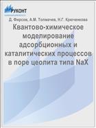 38 УДК 541.183 КВАНТОВО-ХИМИЧЕСКОЕ МОДЕЛИРОВАНИЕ АДСОРБЦИОННЫХ И КАТАЛИТИЧЕСКИХ ПРОЦЕССОВ В ПОРЕ ЦЕОЛИТА ТИПА NaX Д.А. <...> Фирсов, А.М. Толмачев, Н.Г. Крюченкова (кафедра физической химии; е-mail: tolmach@phys.chem.msu.ru) На основе теории функционала плотности проведены квантово-химические расчеты изменения энергетических и структурных характеристик молекул метанола, бензола и пропана при их адсорбции в поре цеолита типа NaX и на фрагменте полости. <...> Наиболее энергетически выгодным является расположение молекул бензола, спирта и пропана вблизи катиона Na, при этом молекула спирта образует водородную связь с кислородным мостиком цеолита. <...> При адсорбции двух молекул спирта они также локализуются у катиона Na с образованием межмолекулярной водородной связи. <...> Проведено сравнительное моделирование катализа реакции дегидрирования пропана в полости и на фрагменте полости цеолита типа NaX, а также проанализировано влияние пространственных факторов на результаты моделирования. <...> Цеолиты представляют большой интерес для многих химических и нефтехимических процессов, являясь катализаторами различных реакций. <...> Это стимулирует интерес к детальным исследованиям свойств молекул, адсорбированных в полости цеолита, однако детальное теоретическое описание этих взаимодействий стало возможным лишь в последнее время. <...> В предыдущих работах [1–2] мы исследовали адсорбцию метанола, этанола и бензола в модельных порах активированного угля методами квантовой химии. <...> В настоящей работе аналогичные расчеты проведены для молекул метанола, бензола и пропана, адсорбированных в поре цеолита типа NaX и на алюмосиликатном фрагменте поры с катионом Na. <...> Для расчетов мы выбрали метод теории функционала плотности (DFT). <...> Отличительной особенностью этого функционала является то, что члены, отвечающие за хартрифоковский обмен и обобщенное градиентное приближение GGA, удачно компенсируют ошибки друг друга, благодаря чему точность решения выше, чем при использовании <...>
