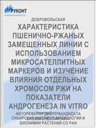ХАРАКТЕРИСТИКА ПШЕНИЧНО-РЖАНЫХ ЗАМЕЩЕННЫХ ЛИНИИ С