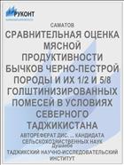 СРАВНИТЕЛЬНАЯ ОЦЕНКА МЯСНОЙ ПРОДУКТИВНОСТИ БЫЧКОВ ЧЕРНО-ПЕСТРОЙ ПОРОДЫ И ИХ 1/2 И 5/8 ГОЛШТИНИЗИРОВАННЫХ ПОМЕСЕЙ В УСЛОВИЯХ СЕВЕРНОГО ТАДЖИКИСТАНА (90,00 руб.)