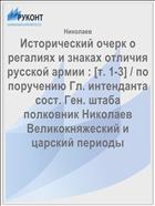 Николаев, Н.Г. Исторический очерк о регалиях и знаках отличия русской армии : [т. 1-3] / по поручению Гл. интенданта сост. Ген. штаба полковник Николаев Великокняжеский и царский периоды / Н.Г. Николаев .— : [Б.и.], 1898 .— 344 с. — URL: https://rucont.ru/efd/49980 (дата обращения: 10.11.2025)