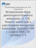 министров, Россия.Комитет Исторический обзор деятельности Комитета министров : [т. 1-5] Комитет министров в царствование императора Александра Третьего (1881 г. 2 марта-1894 г. 20 октября). Т. 4 / сост. И. И. Тхоржевским; Россия.Комитет министров .— : [Б.и.], 1902 .— 491 с. : ил. — URL: https://rucont.ru/efd/49984 (дата обращения: 09.11.2025)