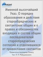 О порядк образованія и д йствія старообрядческихъ и сектантскихъ