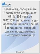 Летописец, содержащий Российскую историю от 6714/1206 лета до 7042/1534 лета, то есть до царствования царя Иоанна Васильевича, который служит продолжением Несторову летописцу .— 2-е изд. — : Синод. тип., 1853 .— 277 с. — URL: https://rucont.ru/efd/51199 (дата обращения: 07.11.2025)