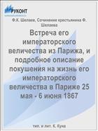%£~г ВСТР ЧА его ИМПЕРАТ РСКЛГ В Ё Л И Ч Ё € Т В Л ИЗЪ ПАРИЖА, и ііодробное описаніе покушенія на жизеь ЕГО ИМПЕРАТОРСКАГО ВЕЛИЧЕСТВА въ Париж ^ 1867. <...> Шслаева •І-