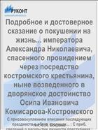 Подробное и достоверное сказание о покушении на жизнь... императора Александра Николаевича, спасенного провидением через посредство костромского крестьянина, ныне возведенного в дворянское достоинство Осипа Ивановича Комисарова-Костромского : С присовокуплением описания последующих празднеств в обеих столицах... : С приб. сведений о раскрытии личности преступника : [Петерб. изд., сост. очевидцем соответственно офиц. сведениям] .— : тип. С.А. Бокрама, 1866 .— 66 с. — URL: https://rucont.ru/efd/58721 (дата обращения: 11.11.2025)