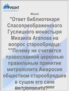 Михей. "Ответ библиотекаря Спасопреображенского Гуслицкого монастыря Михаила Агапова на вопрос старообрядца: ""Почему не считается православной церковью правильным принятие митрополита Амвросия обществом старообрядцев в сущем его сане митрополита?""" / Михей .— : Тип. Э. Лисснера и Ю. Романа, 1894 .— 23 с. — URL: https://rucont.ru/efd/61227 (дата обращения: 19.11.2025)