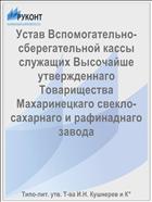 Устав Вспомогательно-сберегательной кассы служащих Высочайше утвержденнаго Товарищества Махаринецкаго свекло-сахарнаго и рафинаднаго завода .— : Типо-лит. утв. Т-ва И.Н. Кушнерев и К°, 1896 .— 14 с. — URL: https://rucont.ru/efd/61414 (дата обращения: 10.11.2025)