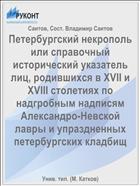 Саитов, В.И. Петербургский некрополь или справочный исторический указатель лиц, родившихся в XVII и XVIII столетиях по надгробным надписям Александро-Невской лавры и упраздненных петербургских кладбищ / Сост. Владимир Саитов; В.И. Саитов .— : Унив. тип. (М. Катков), 1883 .— 160 с. — URL: https://rucont.ru/efd/65365 (дата обращения: 18.11.2025)