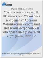 Голубев, С.Т. "Отзыв о книге свящ. Н. Шпачинского: ""Киевский митрополит Арсений Могилянский и состояние Киевской митрополии в его правление (1757-1770 гг.)"" (Киев, 1907 г.)" / Проф. С.Т. Голубев; С.Т. Голубев .— : Имп. О-во истории и древностей рос. при Моск. ун-те, 1909 .— 25 с. — URL: https://rucont.ru/efd/69700 (дата обращения: 19.11.2025)