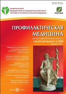 Аннотация Журнал «Профилактическая медицина» («Профилактика заболеваний и укрепление здоровья»), основанный в 1997 г., предназначен для медицинских работников, политиков, организаторов здравоохранения и ученых. Широкий диапазон проблем, которые выносятся на страницы журнала, определяется его общественно-политической и научно-практической направленностью. В журнале освещаются проблемы укрепления здоровья, профилактики и лечения инфекционных и неинфекционных заболеваний: сердечно-сосудистых, онкологических, респираторных, диабета, травматизма и насильственной смерти.