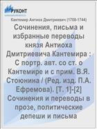 Кантемир Антиох Дмитриевич (1708-1744). Сочинения, письма и избранные переводы князя Антиоха Дмитриевича Кантемира : С портр. авт. со ст. о Кантемире и с прим. В.Я. Стоюнина / (Ред. изд. П.А. Ефремова). [Т. 1]-[2] Сочинения и переводы в прозе, политические депеши и письма / Кантемир Антиох Дмитриевич (1708-1744) .— : [Б.и.], 1868 .— 471 с. — URL: https://rucont.ru/efd/72775 (дата обращения: 15.11.2025)