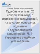 Россия. Законы и постановления. Судебные уставы 20 ноября 1864 года, с изложением рассуждений, на коих они основаны, изданные Государственной канцелярией : Ч. 1- Учреждение судебных установлений / Россия. Законы и постановления .— : [Б.и.], 1867 .— 629 с. — URL: https://rucont.ru/efd/77080 (дата обращения: 20.11.2025)