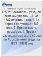 Ростовская уездная земская управа. Отчет Ростовской уездной земской управы... 1. За 1882 отчетный год, 2. За первое полугодие 1883 года, 3. Проэкт сметы расходов, 4. Проэкт раскладки земского сбора по Ростовскому уезду на 1883 [!1884] год / Ростовская уездная земская управа .— : [Б.и.], 1883 .— 87 с. — URL: https://rucont.ru/efd/78034 (дата обращения: 13.11.2025)