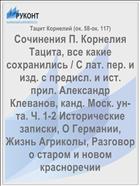 Тацит Корнелий (ок. 58-ок. 117). Сочинения П. Корнелия Тацита, все какие сохранились / С лат. пер. и изд. с предисл. и ист. прил. Александр Клеванов, канд. Моск. ун-та. Ч. 1-2 Исторические записки, О Германии, Жизнь Агриколы, Разговор о старом и новом красноречии / Тацит Корнелий (ок. 58-ок. 117) .— : [Б.и.] .— 403 с. — URL: https://rucont.ru/efd/79737 (дата обращения: 13.11.2025)