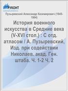 Пузыревский Александр Казимирович (1845-1904). История военного искусства в Средние века (V-XVI стол.) : С отд. атласом / А. Пузыревский, Изд. при содействии Николаев. акад. Ген. штаба. Ч. 1-2 Ч. 2 / Пузыревский Александр Казимирович (1845-1904) .— : [Б.и.] .— 235 с. — URL: https://rucont.ru/efd/80028 (дата обращения: 12.11.2025)