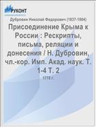 Дубровин Николай Федорович (1837-1904). Присоединение Крыма к России : Рескрипты, письма, реляции и донесения / Н. Дубровин, чл.-кор. Имп. Акад. наук. Т. 1-4 Т. 2 : 1778 г. / Дубровин Николай Федорович (1837-1904) .— : [Б.и.], 1885 .— 947 с. — URL: https://rucont.ru/efd/80038 (дата обращения: 10.11.2025)
