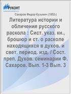 Сахаров Федор Кузьмич (1852-). Литература истории и обличения русского раскола : Сист. указ. кн., брошюр и ст. о расколе находящихся в духов. и свет. период. изд. / Сост. преп. Духов. семинарии Ф. Сахаров. Вып. 1-3 Вып. 3 / Сахаров Федор Кузьмич (1852-) .— : [Б.и.], 1900 .— 347 с. — URL: https://rucont.ru/efd/80078 (дата обращения: 08.11.2025)