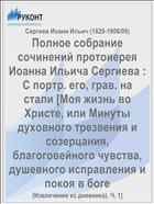 Сергиев Иоанн Ильич (1829-1908/09). Полное собрание сочинений протоиерея Иоанна Ильича Сергиева : С портр. его, грав. на стали [Моя жизнь во Христе, или Минуты духовного трезвения и созерцания, благоговейного чувства, душевного исправления и покоя в боге : (Извлечение из дневника). Ч. 1] / Сергиев Иоанн Ильич (1829-1908/09) .— : [Б.и.], 1892 .— 413 с. — URL: https://rucont.ru/efd/80245 (дата обращения: 14.11.2025)