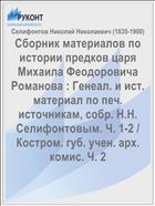 Селифонтов Николай Николаевич (1835-1900). Сборник материалов по истории предков царя Михаила Феодоровича Романова : Генеал. и ист. материал по печ. источникам, собр. Н.Н. Селифонтовым. Ч. 1-2 / Костром. губ. учен. арх. комис. Ч. 2 / Селифонтов Николай Николаевич (1835-1900) .— : [Б.и.], 1898 .— 126 с. : ил. — URL: https://rucont.ru/efd/80473 (дата обращения: 12.11.2025)