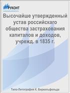 Высочайше утвержденный устав российскаго общества застрахования капиталов и доходов, учрежд. в 1835 г. (90,00 руб.)