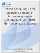Устав лечебницы для душевно и нервно-больных доктора медицины Ф. А. Савей-Могилевича, в г. Москве (60,00 руб.)