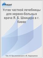 Устав частной лечебницы для нервно-больных врача Я. Б. Шницера в г. Киеве (60,00 руб.)