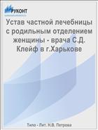 Устав частной лечебницы с родильным отделением женщины - врача С.Д. Клейф в г.Харькове (60,00 руб.)
