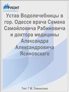 Устав Водолечебницы в гор. Одессе врача Семена Самойловича Рабиновича и доктора медицины Александра Александровича Ясиновскаго (60,00 руб.)
