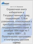 Справочная книга избирателя в Государственную думу, содержащая: 1) Все узаконения, относящияся к преобразованию нашего государственнаго строя, с декабря 1904 года по 1 марта 1906 г. , 2) Политические программы и платформы русских партий / сост. А. А. Башмаков .— : Слово, 1906 .— 522 с. — URL: https://rucont.ru/efd/81662 (дата обращения: 15.11.2025)