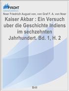 Noer Friedrich August von. Kaiser Akbar : Ein Versuch uber die Geschichte Indiens im sechzehnten Jahrhundert. Bd. 1, H. 2 / von Graf F. A. von Noer; Noer Friedrich August von .— : Brill, 1881 .— 305 с. — Lang: ger .— URL: https://rucont.ru/efd/87548 (дата обращения: 10.11.2025)