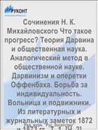 Сочинения Н. К. Михайловского Что такое прогресс? Теория Дарвина и общественная наука. Аналогический метод в общественной науке. Дарвинизм и оперетки Оффенбаха. Борьба за индивидуальность. Вольница и подвижники. Из литературных и журнальных заметок 1872 и 1873 гг.. Т. 1, [Ч. 2] .— : Ред. журн. "Рус. богатство", 1896 .— 323 с. — URL: https://rucont.ru/efd/87913 (дата обращения: 12.11.2025)