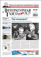 Первый номер газеты, основанный группой литераторов при ближайшем участии А.С. Пушкина вышел 1 января 1830 года. <...> Сегодня «ЛГ» - прежде всего общественно-политический еженедельник для широкого круга интеллигенции, посвященный политике и экономике, обществу, литературе и искусству, человеку. <...> Обязательные темы каждого выпуска: «События и мнения», «Политика», «Общество», «Литература», «Искусство», знаменитый «Клуб 12 стульев». <...> Периодически выходят номера с обширными приложениями: «Действующие лица», «ЛАД - Российско-Белорусская газета», «Клуб 206». <...> «Литературная газета» - неотъемлемая часть истории, культуры и духовной жизни России, ее национальное достояние. <...>