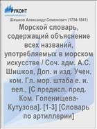 Шишков Александр Семенович (1754-1841). Морской словарь, содержащий объяснение всех названий, употребляемых в морском искусстве / Соч. адм. А.С. Шишков, Доп. и изд. Учен. ком. Гл. мор. штаба е. и. вел., [С предисл. пред. Ком. Голенищева-Кутузова]. [1-3] [Словарь по артиллерии] / Шишков Александр Семенович (1754-1841) .— : [Б.и.], 1840 .— 327 с. — URL: https://rucont.ru/efd/69960 (дата обращения: 11.11.2025)