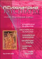 АннотацияЖурнал «Психиатрия» основан в 2002 году по инициативе академика РАН А.С.Тиганова. С 2008 г. журнал входит в «Перечень рецензируемых научных журналов». В журнале «Психиатрия» публикуются научные и информационные материалы в соответствии с основными направлениями журнала. В задачи журнала входит распространение актуальной информации о последних научных разработках и достижениях клинической психиатрии, фундаментальных исследований в области нейронаук. Большое внимание уделяется современным методам диагностики, лекарственной терапии психических нарушений, другим видам терапевтического вмешательства и реабилитации пациентов разного возраста (детского, подросткового, юношеского, зрелого и позднего возраста). Трансляция результатов научных исследований в медицинскую практику представляет образовательную ценность для врачей, научных работников и организаторов здравоохранения. Ценность представляют сообщения практических врачей о полезном опыте выявления и лечения психических нарушений. Журнал предназначен для широкого круга читателей – врачей, научных работников, студентов вузов и ФУВ, организаторов здравоохранения РФ, стран СНГ и зарубежья.